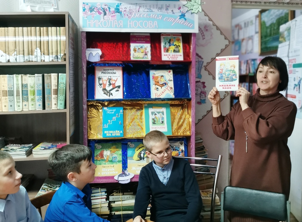 Действующую выставку «Веселая страна Николая Носова» ребятам представила библиотекарь Н.А. Александрова. Далее юным читателям предложили попробовать самостоятельно заполнить читательский формуляр и осуществить поиск нужной книги на полке. После обзорной экскурсии по библиотеке было много вопросов. Работа библиотекаря вызвала живой интерес у школьников.