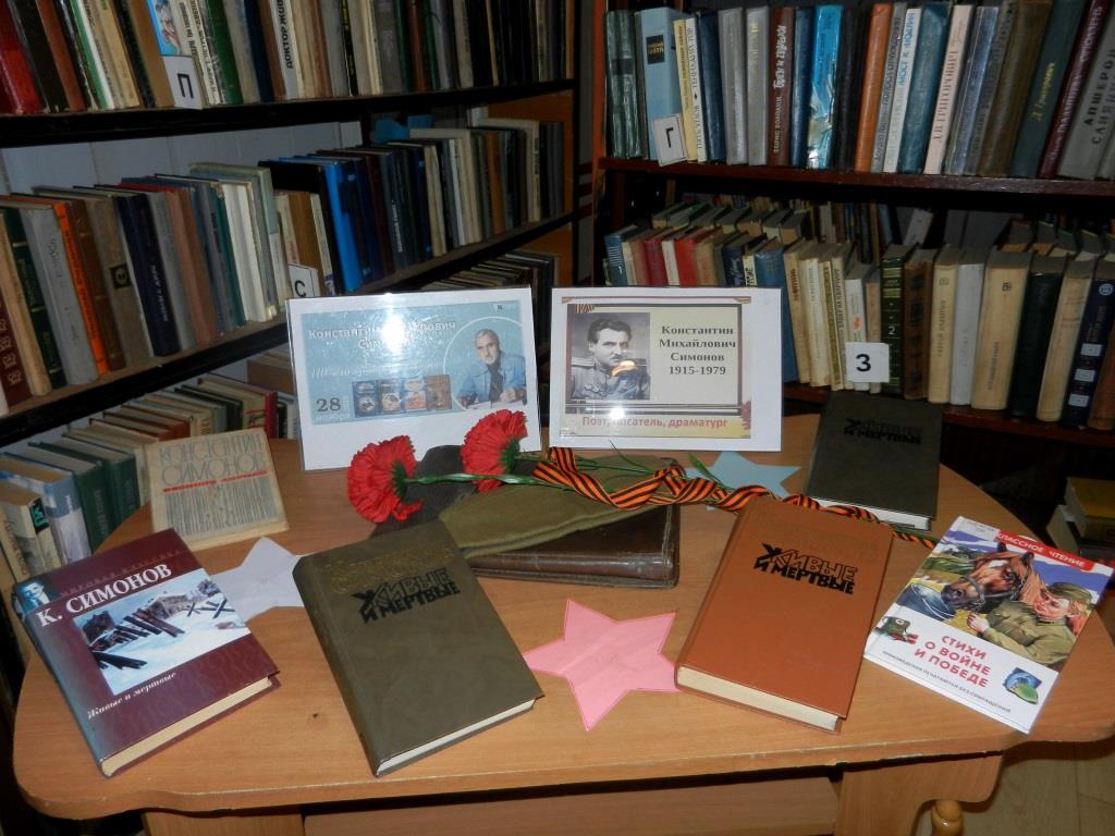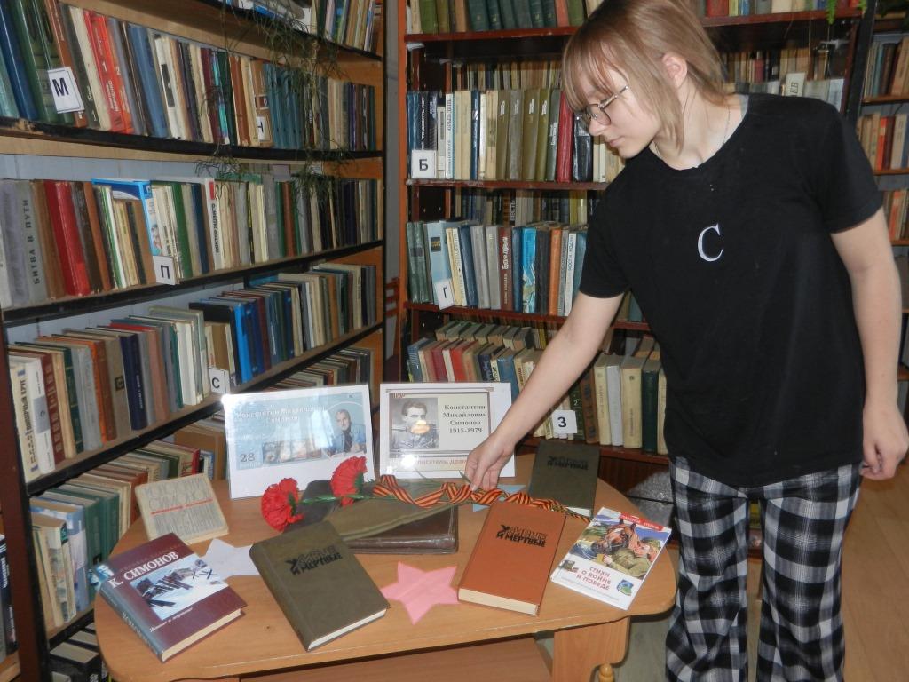 К этой дате в библиотеке организована книжная выставка. На выставке представлены сборники стихов К. Симонова, произведения «Живые и мёртвые».