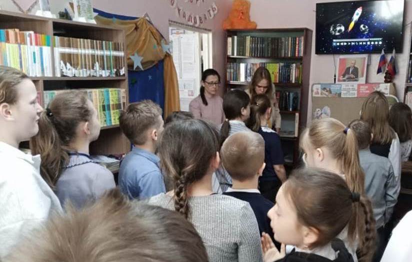 Библиотекарь познакомила ребят с некоторыми материалами из книг, представленных на выставке по теме встречи. Они с интересом посмотрели познавательный фильм о важных страницах в истории нашей страны, связанных с покорением космоса.
