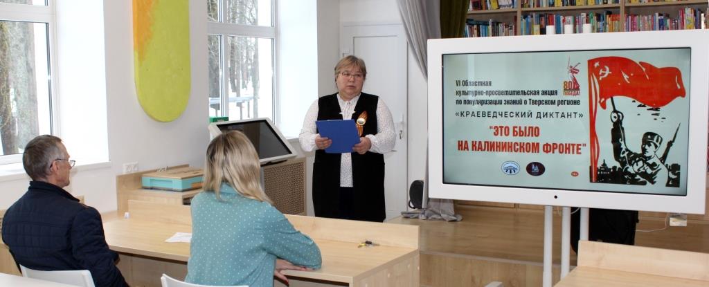 Акция организована Тверской областной универсальной научной библиотекой им. А.М. Горького при поддержке Отделения Российского исторического общества в Тверской области, и в этом году она посвящена 80-летию Победы в Великой Отечественной войне 1941-1945 годов. Название диктанта - «Это было на Калининском фронте» - отражал суть тестовых вопросов.