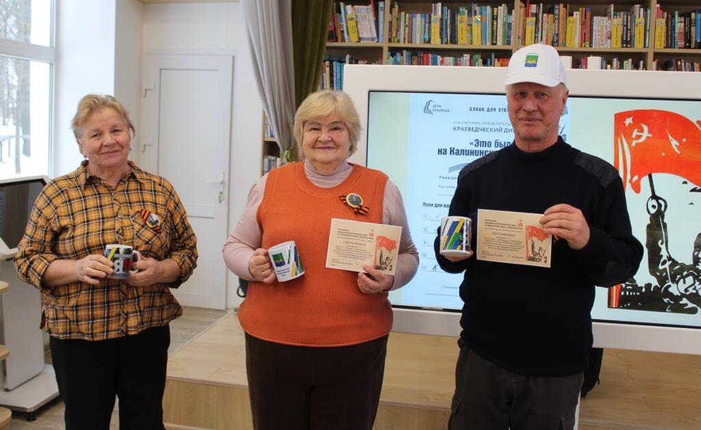 На память о событии все участники VI культурно-просветительской акции «Краеведческий диктант» получили именные сертификаты. Набравшие наибольшее количество баллов – Александр Михайлович Румянцев, Надежда Михайловна Олейник, Елена Петровна Мирова – сувениры краеведческой тематики.