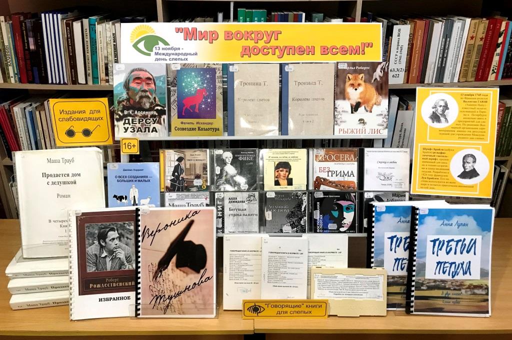 В преддверии Международного дня слепых, которое ежегодно отмечается 13 ноября, в читальном зале библиотеки оформлена особенная выставка – «Мир вокруг доступен всем». Само название выставки несет в себе глубокий смысл и является своеобразным лозунгом. Оно говорит о том, что библиотеки, как хранители знаний и культуры, открыты для всех, независимо от физических возможностей.