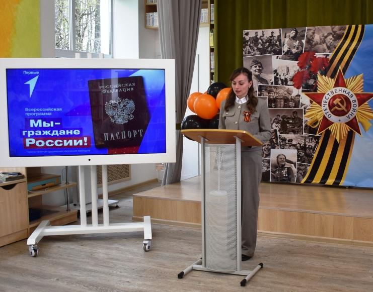 6 мая, в канун 80-й годовщины Победы советского народа в Великой Отечественной войне, в детской модельной библиотеке состоялось торжественное вручение школьникам, достигшим 14-летнего возраста, их главного в жизни документа – паспорта гражданина РФ. В начале мероприятия участникам события были вручены георгиевские ленточки.