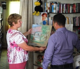 Гости внимательно рассматривали выставленные в фойе библиотеки фотокопии художественных работ. Атмосфера мероприятия была теплой, каждый присутствующий чувствовал связь с историей своего края.