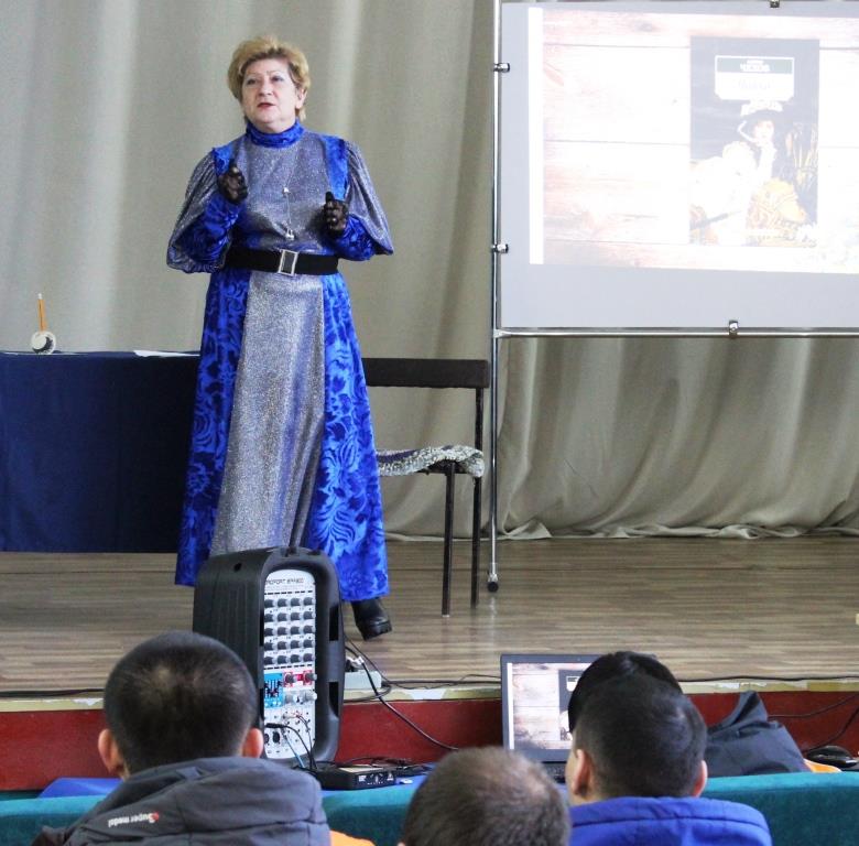 Знакомя слушателей с литературным творчеством А.П. Чехова, были показаны театрализованные отрывки из рассказов «Радость», «Ванька», «Егерь», «Предложение» и пьесы «Чайка». Вспомнили крылатые выражения и афоризмы из произведений писателя, среди которых: «В человеке должно быть все прекрасно: и лицо, и одежда, и душа, и мысли», «Пока молоды, сильны, бодры, не уставайте делать добро! Делайте добро!».