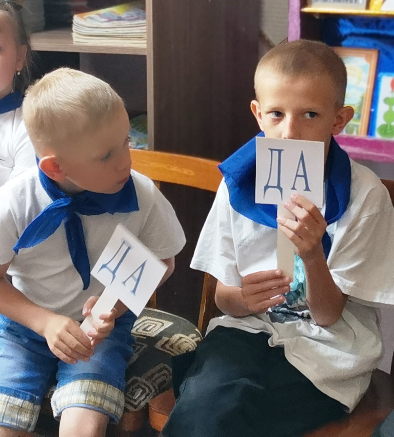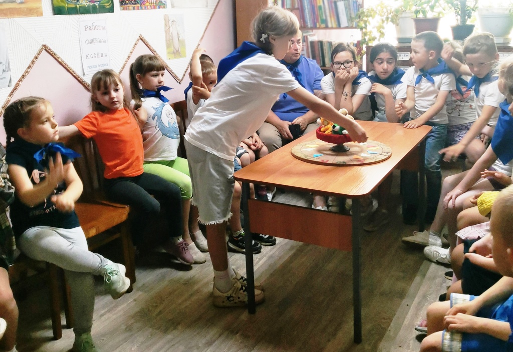Разделившись на команды, юные читатели отвечали на вопросы цветных секторов игры «Что? Где? Когда?». Им пришлось "отсортировать мусор по категориям", вспомнить народные приметы, найти животных по описанию и т.д.