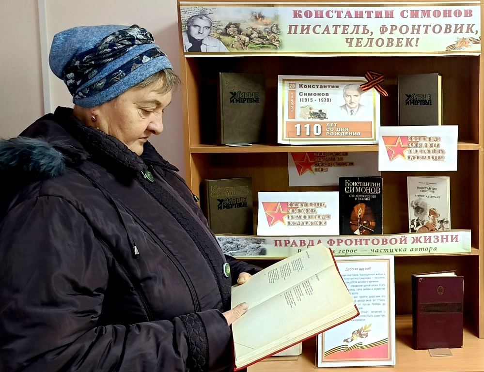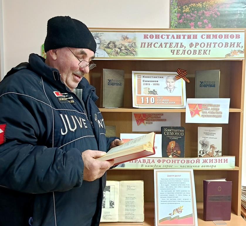 Односельчане, посетившие выставку, приняли участие в акции «На фронтовых перекрестках К. Симонова». Звучали стихи писателя, правдивые, искренние, душевные, проникнутые болью и героизмом.