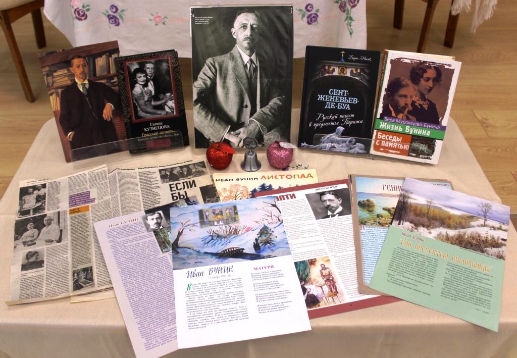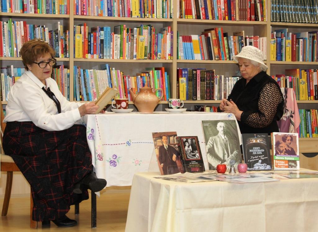Ведущая мероприятия Екатерина Ивановна Локтева поделилась интересными фактами из биографии И.А. Бунина. Фотографии родителей, герб древнего рода Буниных, рассказ о гимназическом периоде передали атмосферу детства и юности писателя. Затем ведущая рассказала о его личной жизни, о непростом выборе в революционные годы, о жизни в эмиграции во Франции и тоске по родине.