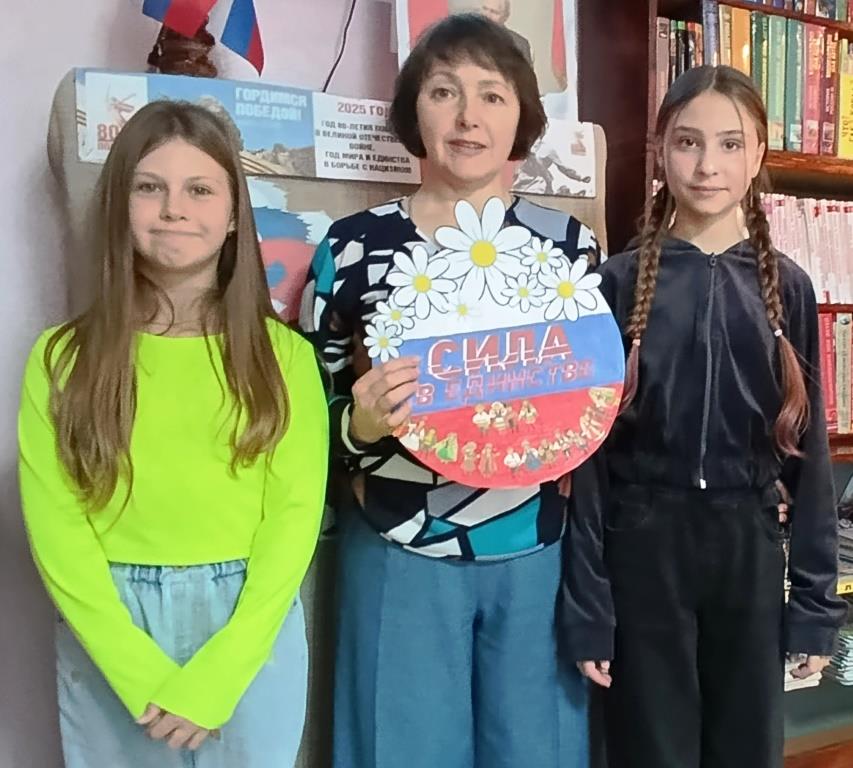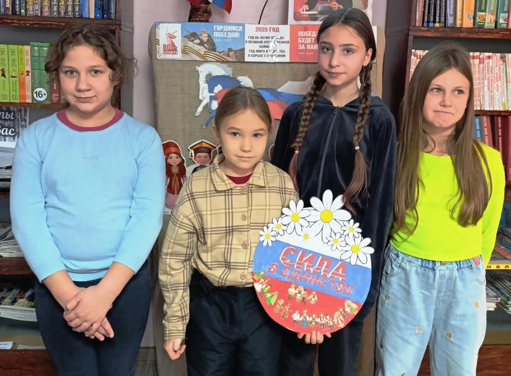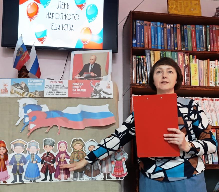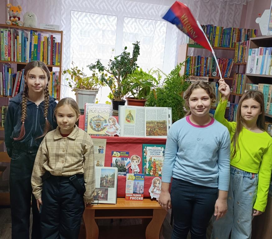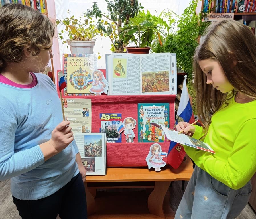 В городском филиале прошёл познавательный час, посвященный этой дате. Библиотекарь Н.А. Александрова рассказала об истории праздника, о событиях смутного времени. Из познавательного мультфильма ребята узнали о подвиге Минина и Пожарского, о многообразии народов, проживающих на территории страны.