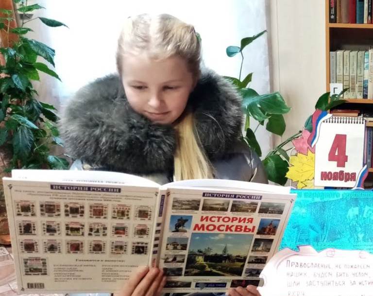 Библиотекарь Лебедева Л.Г. провела для посетителей увлекательную экскурсию по страницам устного журнала "Славный день в истории России". Она рассказала о событиях четырехсотлетней давности, которые легли в основу праздника народного единения.