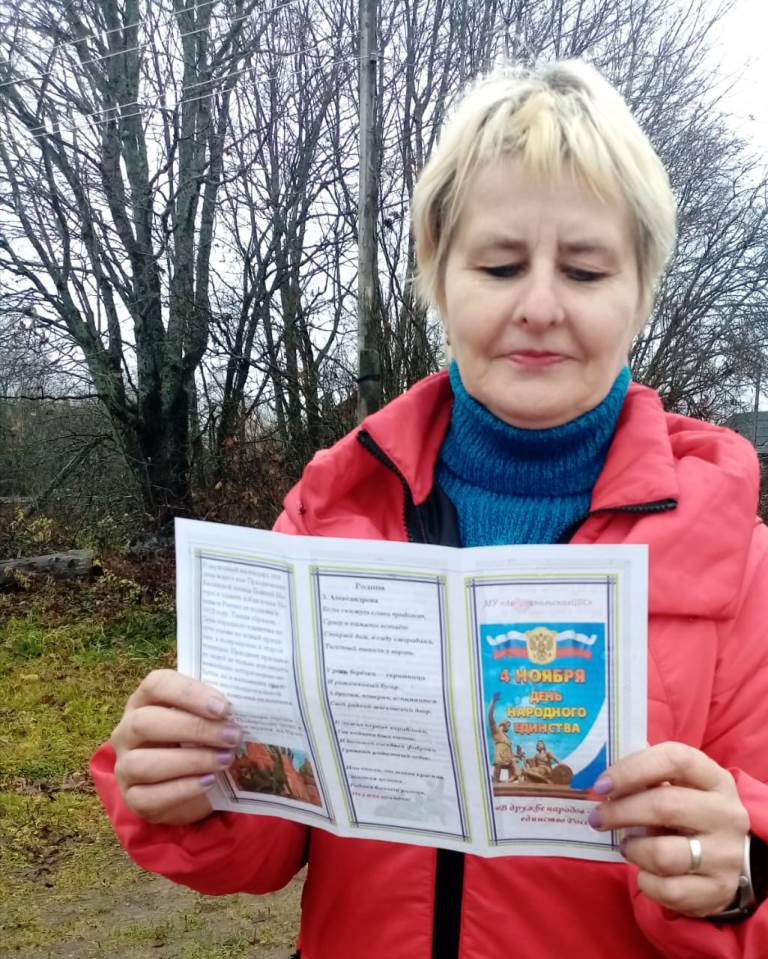 Жители и гости села также смогли принять участие в патриотической акции "Когда мы вместе – мы едины", организованной библиотекарем. Каждый участник получил буклет с историей праздника и поздравлениями.