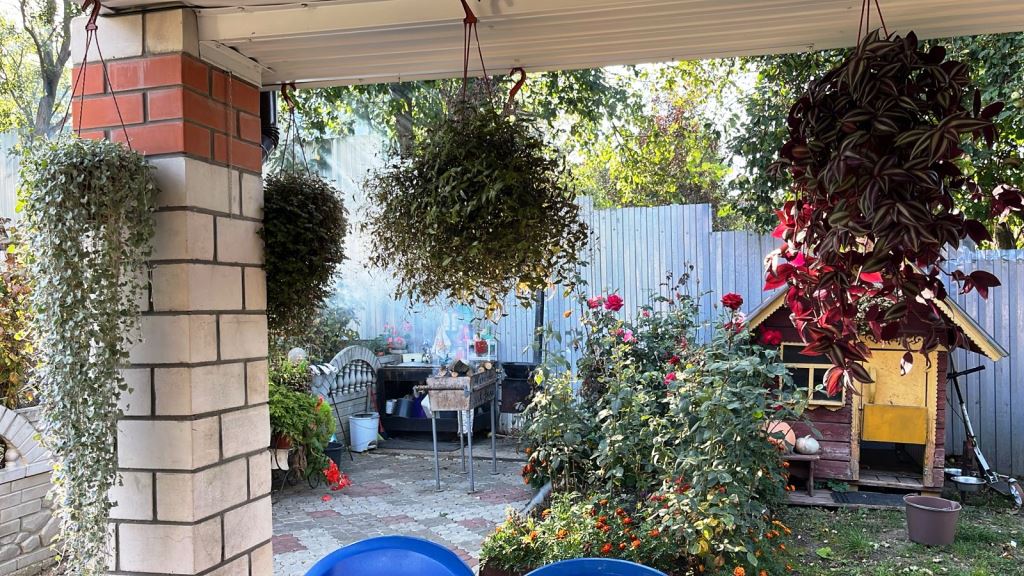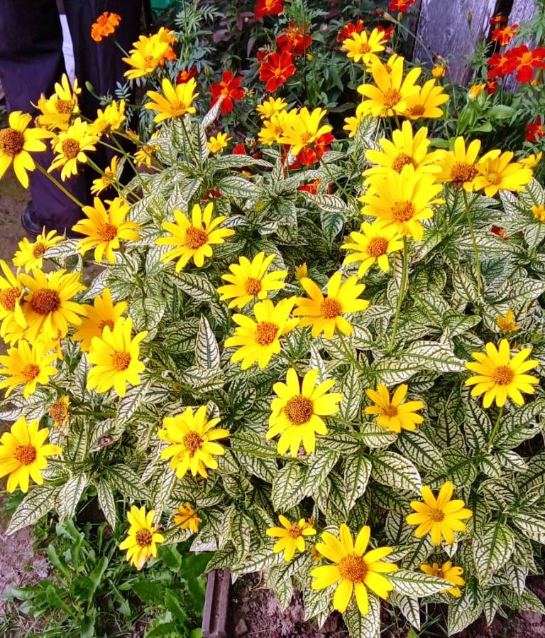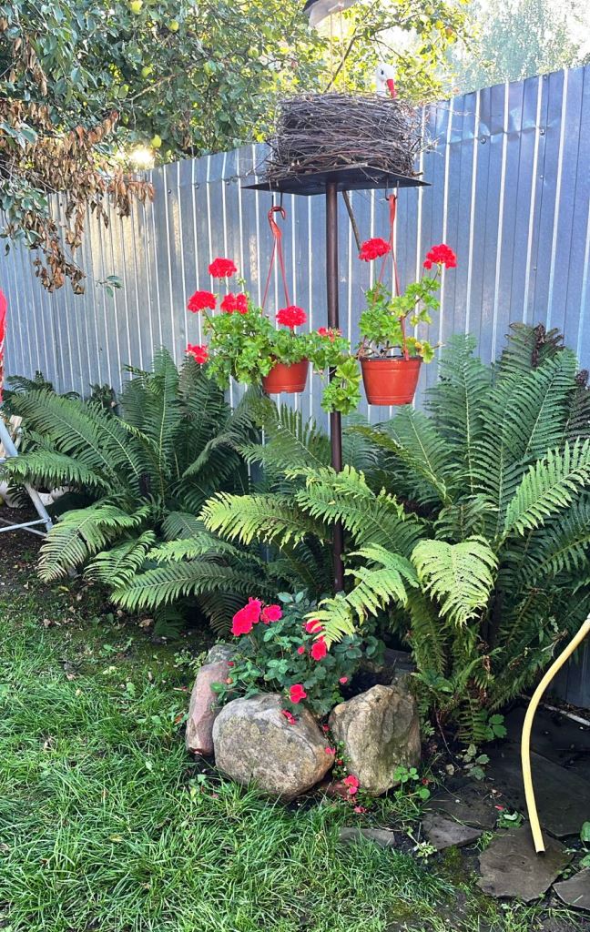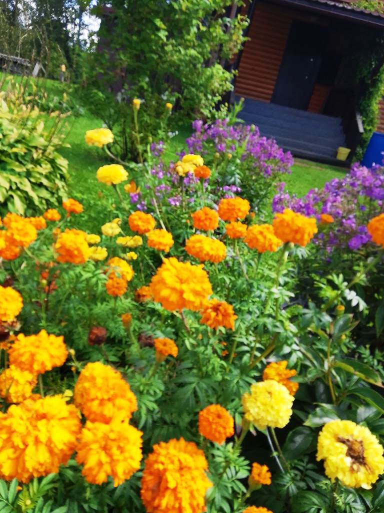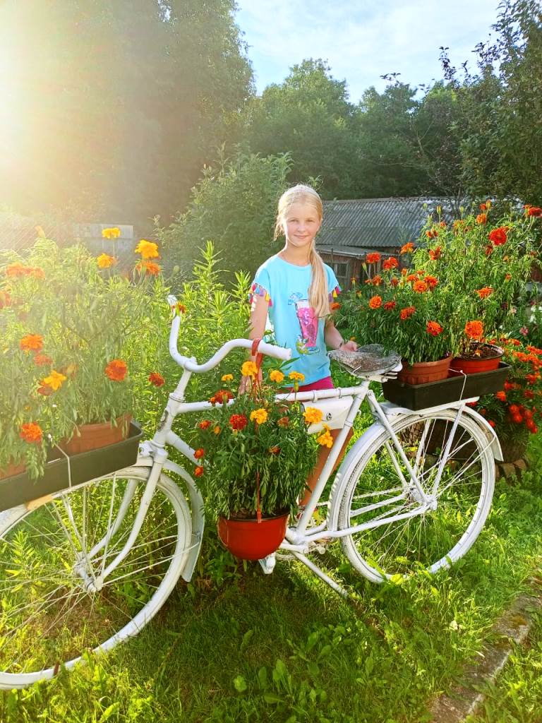 Оригинальные грядки, обрамленные камнями, и даже старый велосипед, превращенный в яркую клумбу с бархатцами, – все это свидетельствует о яркой фантазии и любви к прекрасному.