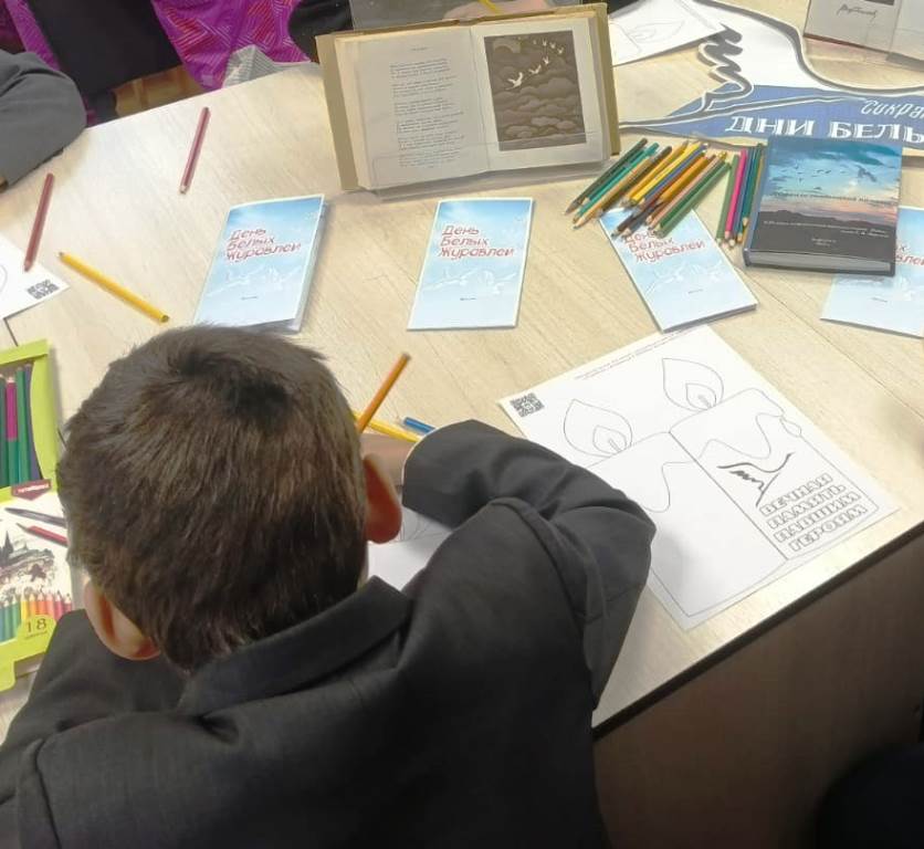 В День белых журавлей юные читатели Бологовской библиотеки приняли участие в мастер-классе по изготовлению памятной поделки "Свеча памяти".