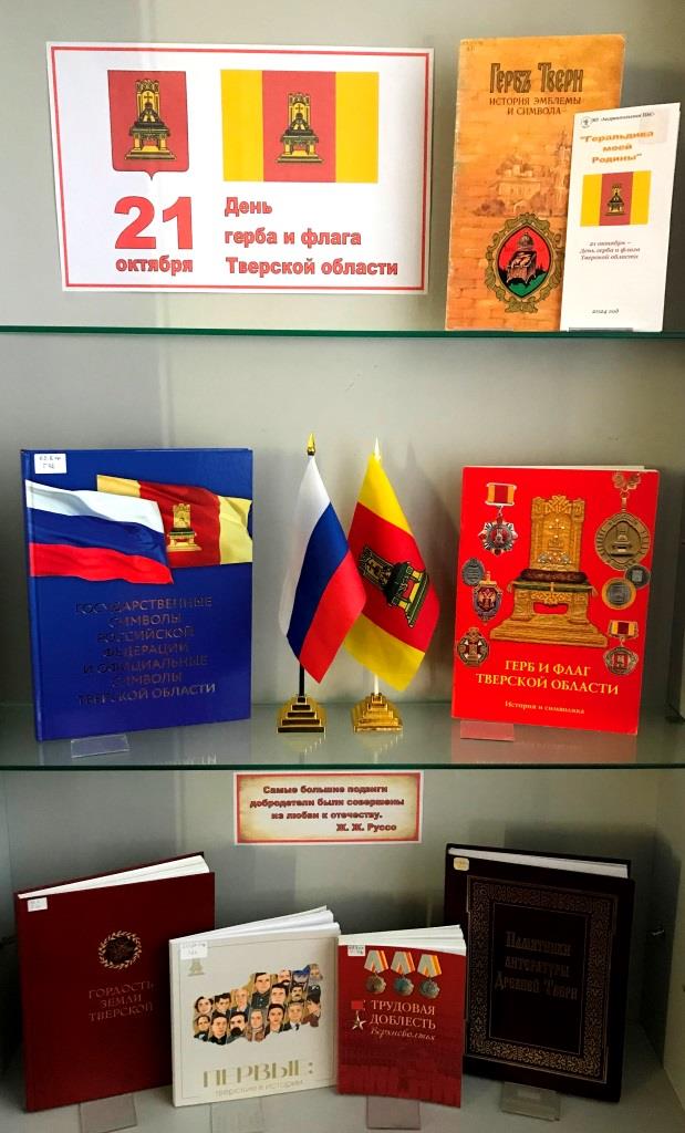 И все же центральное место в выставке заняли книги, посвященные истории герба и флага Тверской области. В них подробно рассказывается о том, как менялся герб на протяжении веков, какие события повлияли на его формирование. Эти книги станут хорошими помощниками для всех, кто хочет лучше понять символику нашего региона.