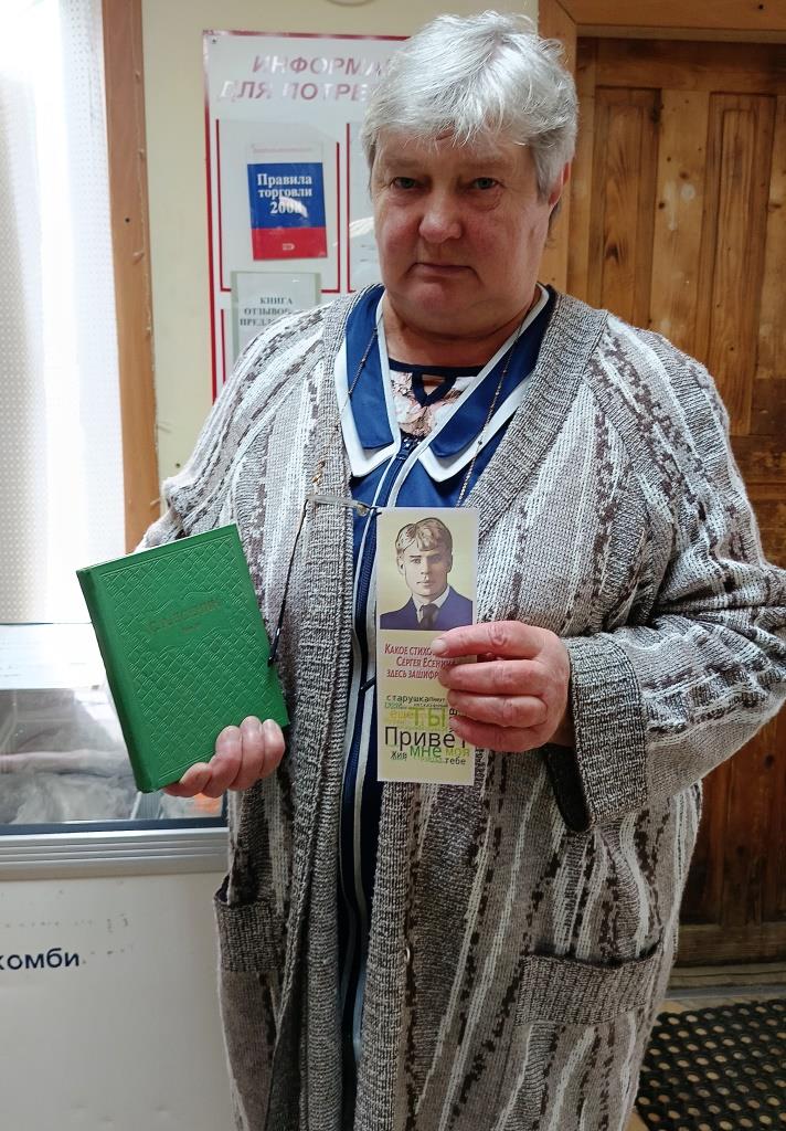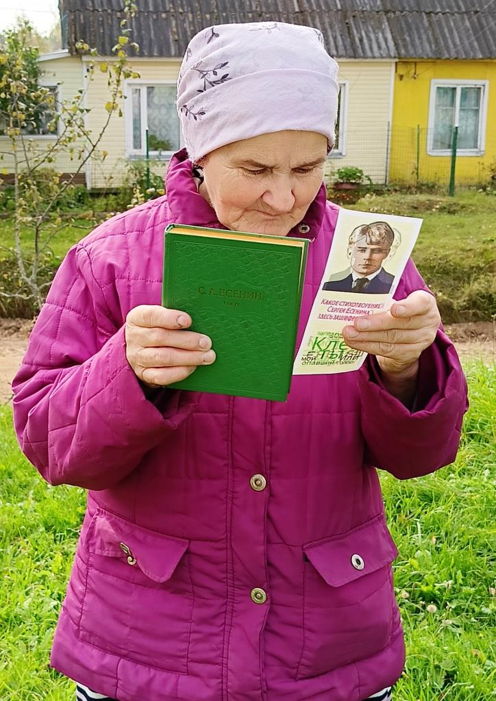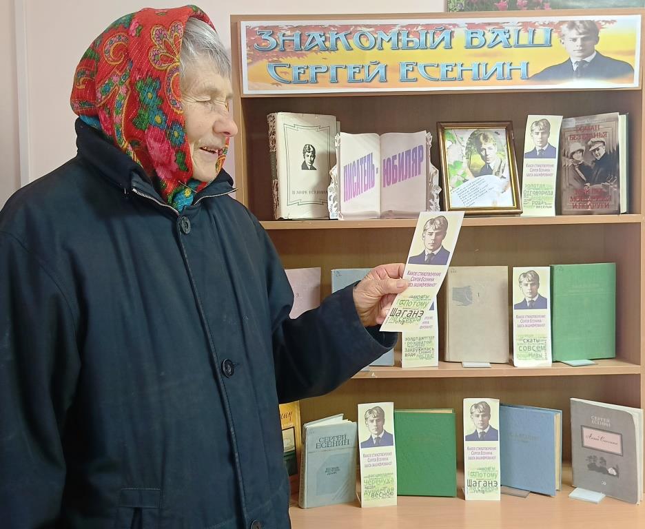Библиотекарь Соколова Л.А. раздавала односельчанам закладки со словами из произведений С. Есенина, написанными в хаотичном порядке, по которым нужно было узнать стихотворение.