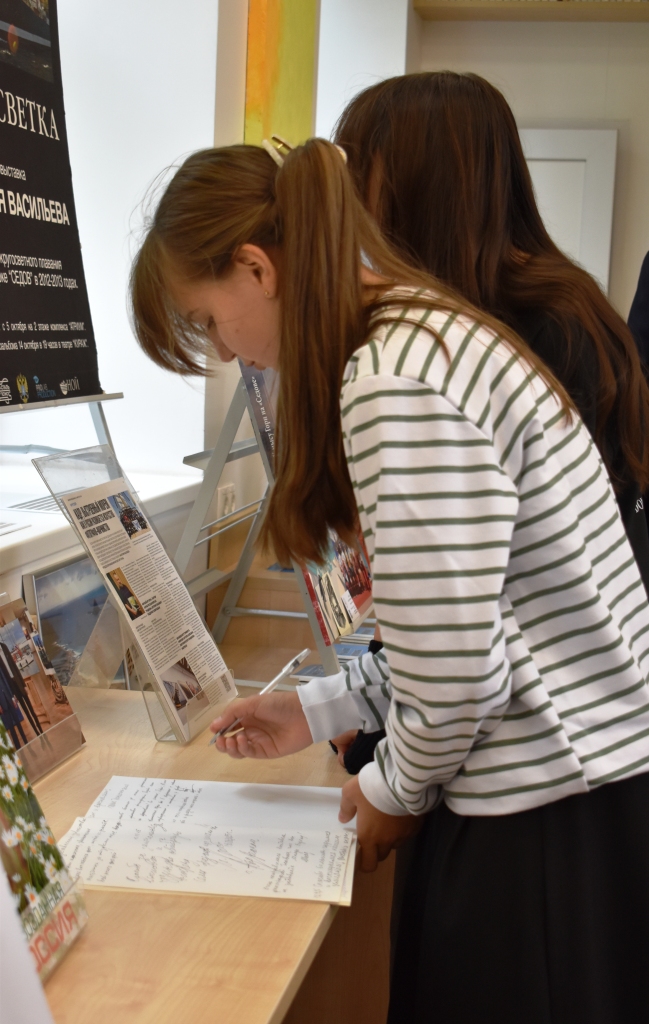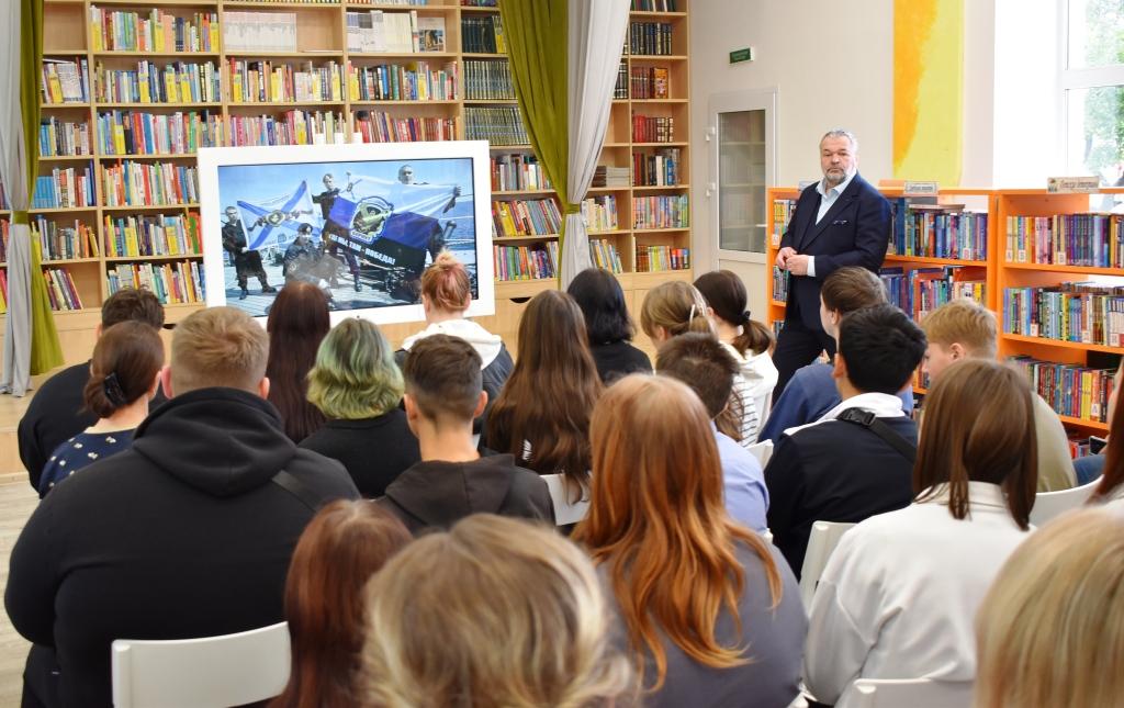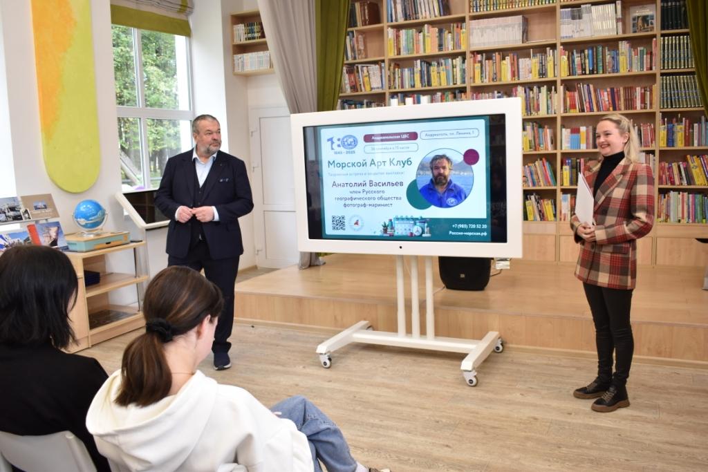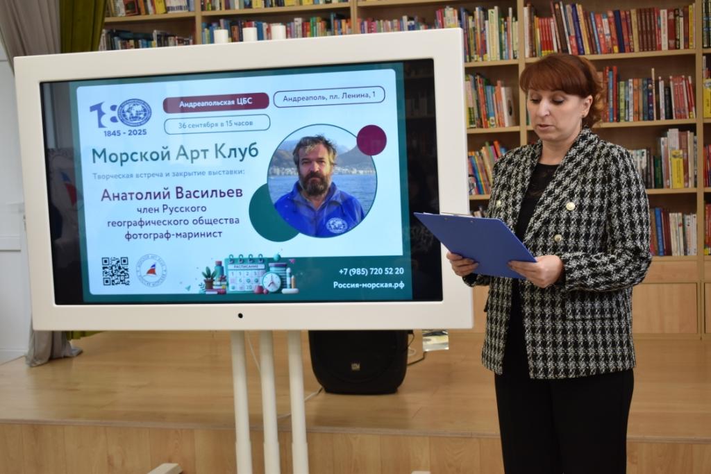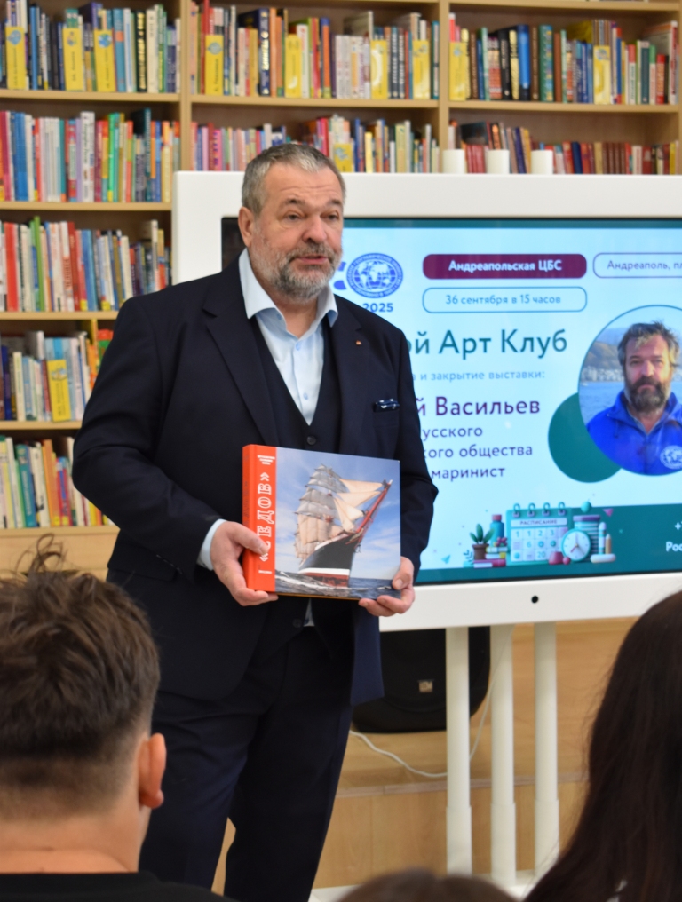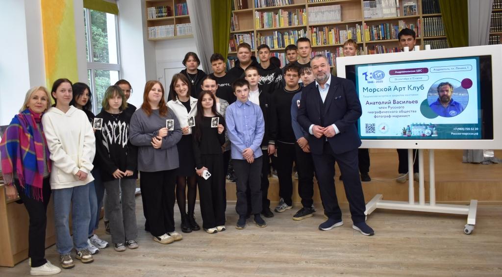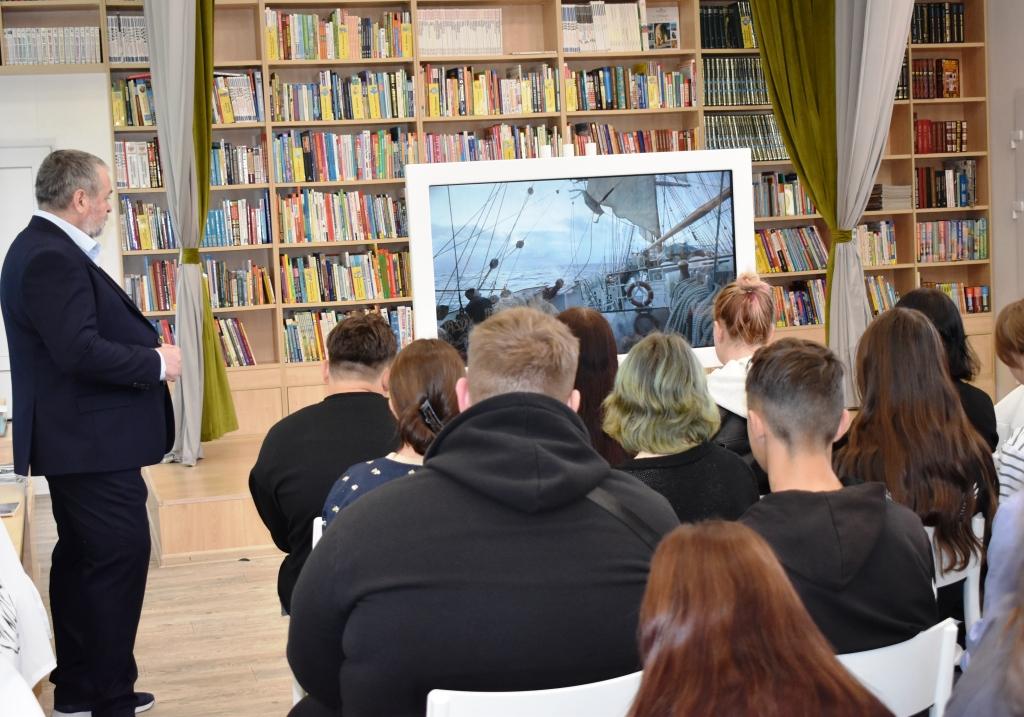 26 сентября в детской модельной библиотеке состоялась творческая встреча и закрытие персональной выставки путешественника, военно-морского офицера-гидрографа, фотографа-мариниста, участника кругосветного плавания на парусном судне «Седов» Анатолия Михайловича Васильева. Погрузиться в мир географических исследований и морских приключений посчастливилось учащимся школы №1 и студентам колледжа.
