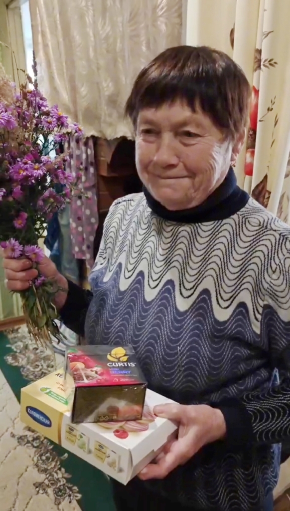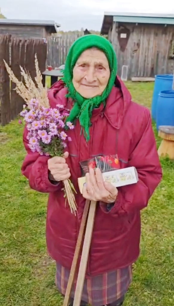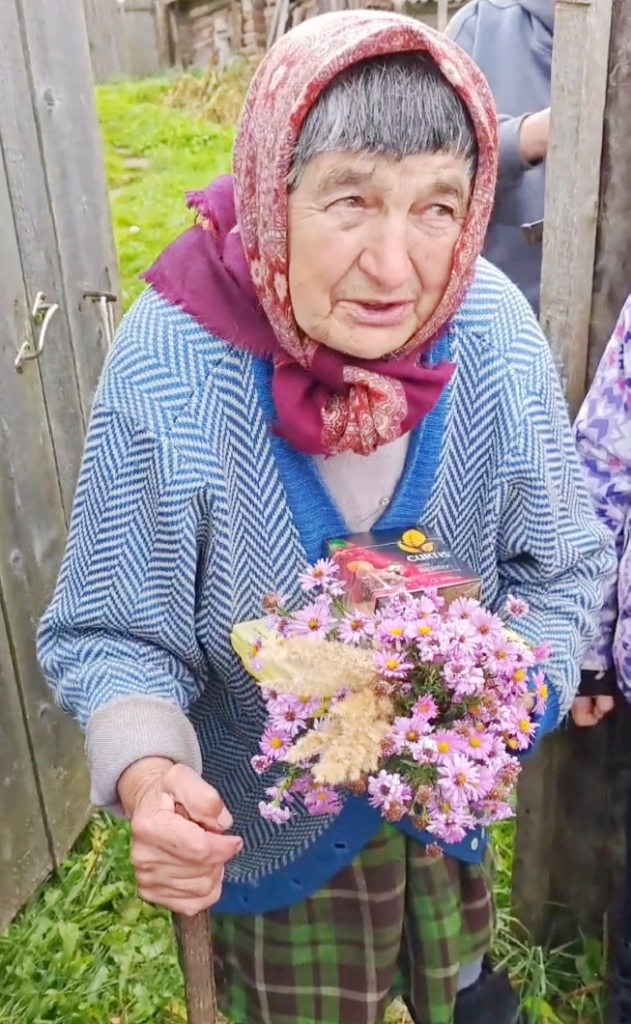 Ребята вместе с библиотекарями поздравили самых мудрых жителей деревни с праздником, подарив цветы и гостинцы к чаю.