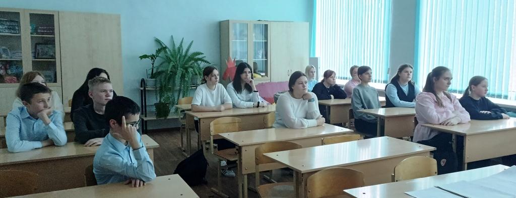 Школьников познакомили с биографией Константина Симонова и его военными стихами. Рассказ сопровождался яркой электронной презентацией, иллюстрирующей ключевые моменты жизненного пути. Главные мотивы творчества Константина Симонова - война, любовь, патриотизм и судьба поколения, пережившего великую трагедию. Его стихи, пропитанные пороховым дымом и горечью потерь, стали неотъемлемой частью культурного кода России. Учащиеся посмотрели фрагмент замечательного фильма по произведению писателя «Живые и мертвые».