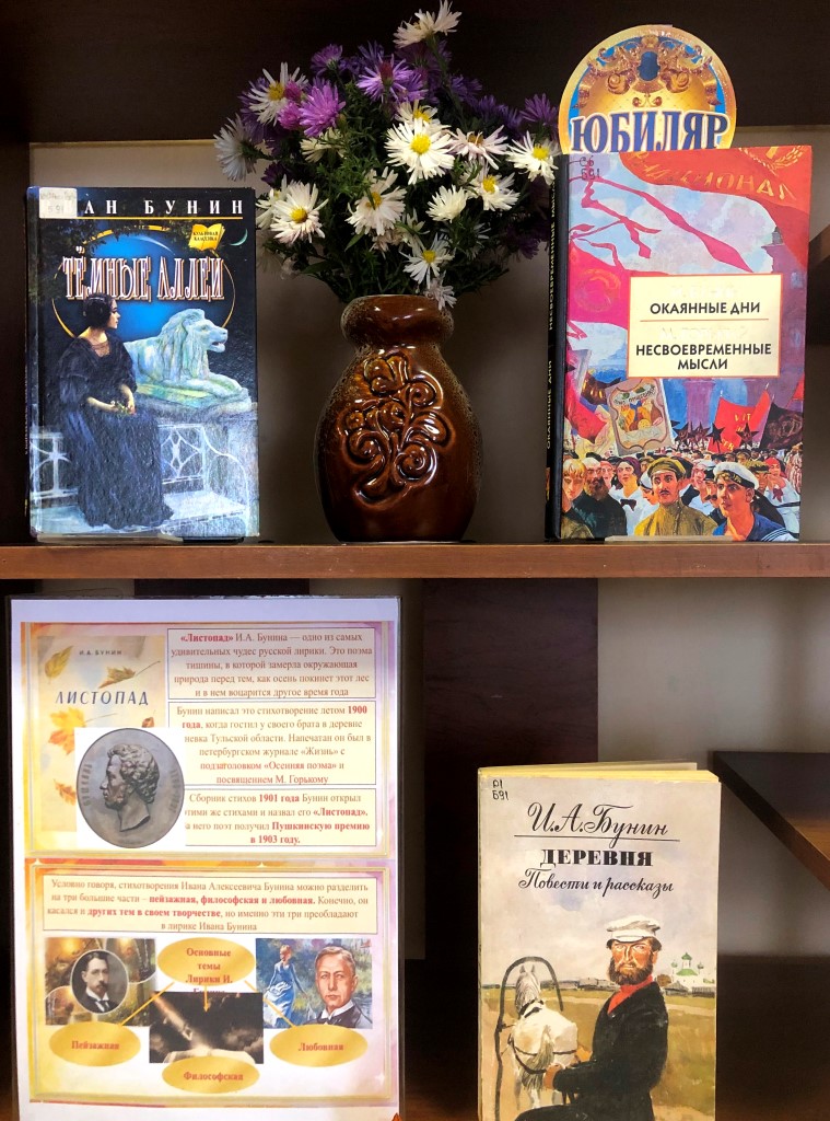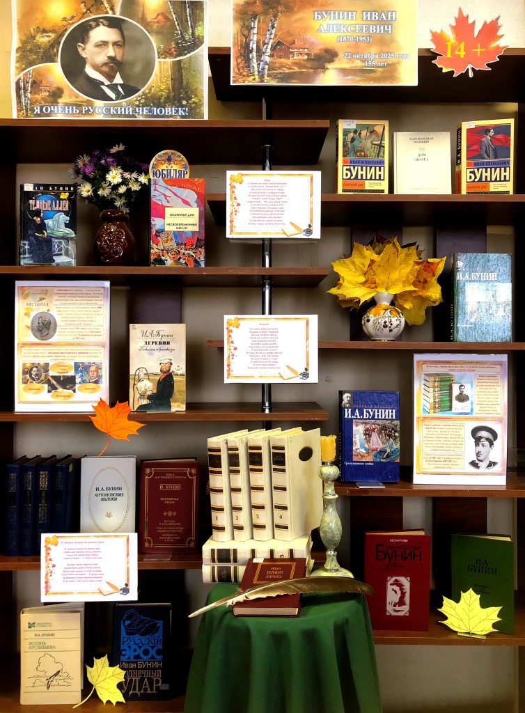 Под таким заголовком на абонементе Центральной библиотеки оформлена книжная выставка, приуроченная к 155-летию со дня рождения великого русского поэта и писателя Ивана Алексеевича Бунина (1870-1953 гг.).