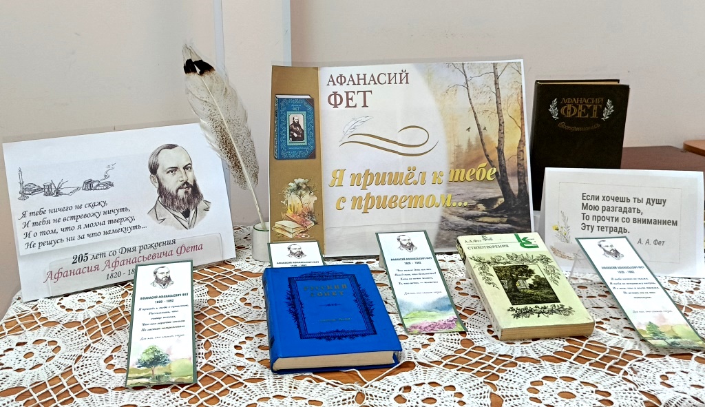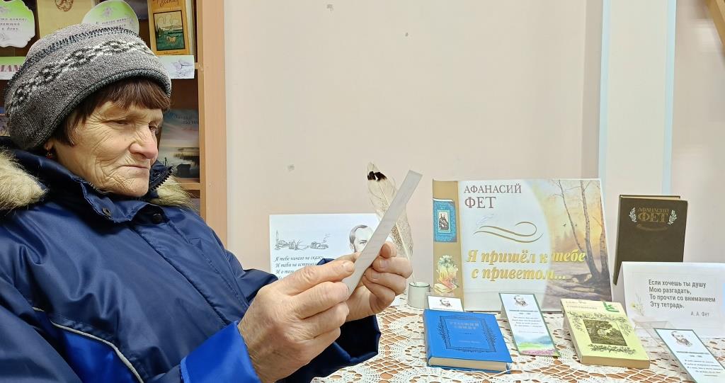 В этой день читатели приняли участие в акции «Для тех, кто слышит поэзию», посвященной А.А. Фету. Библиотекарь Соколова Л.А. вручала закладки с начальными строками стихов автора, участникам акции предлагалось прочитать все стихотворение.
