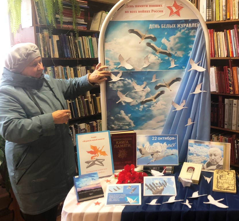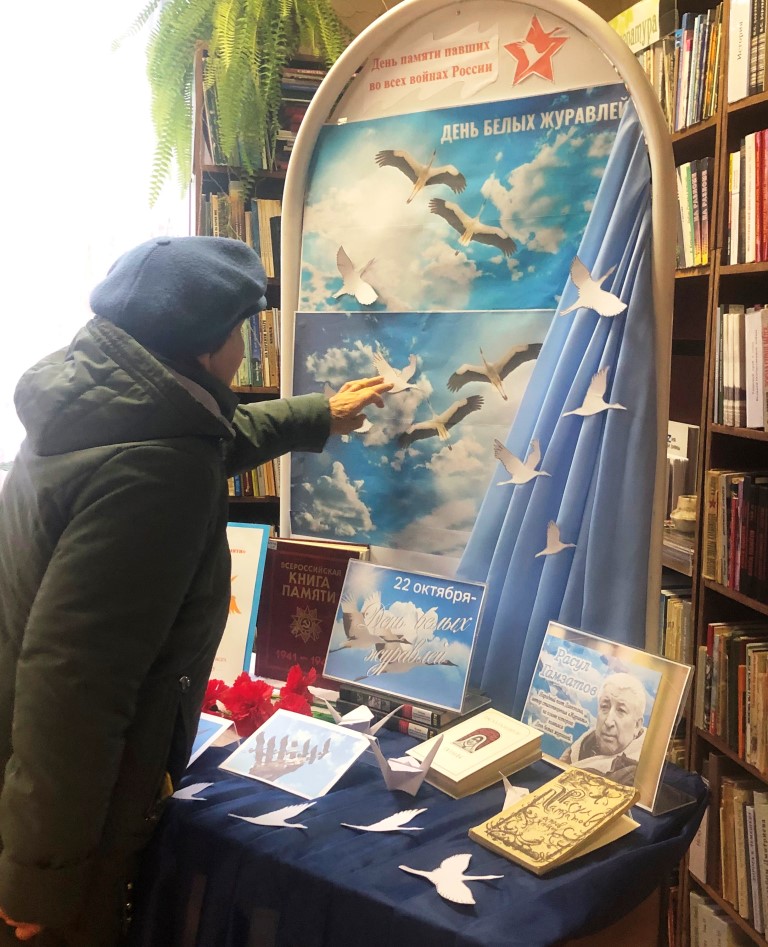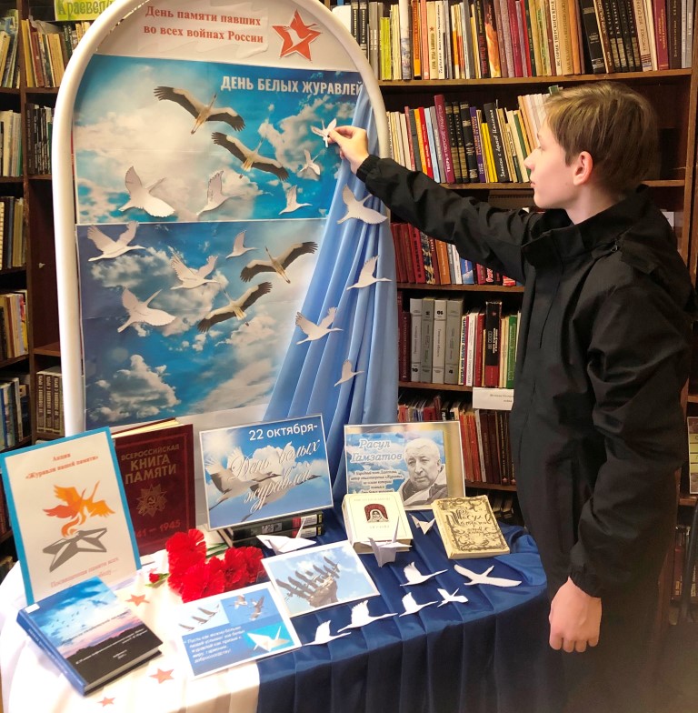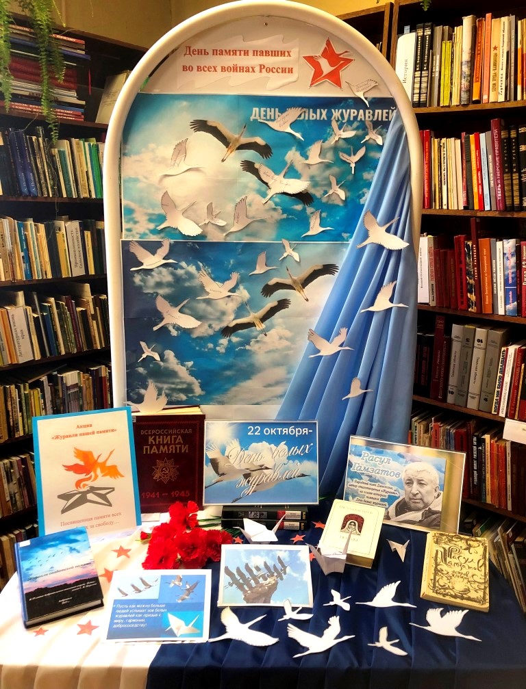В этот день на абонементе центральной библиотеки прошла акция «Журавли нашей памяти».